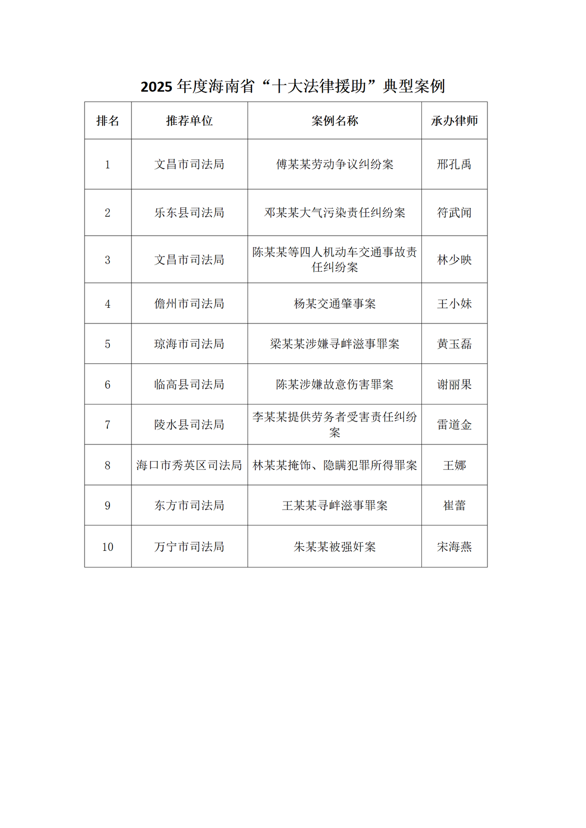 11月24日,记者从海南省司法厅获悉,海南省法律援助中心举办2025年全省“十佳法律援助”评选活动,评选结果公示期已满,现已正式向社会公布。